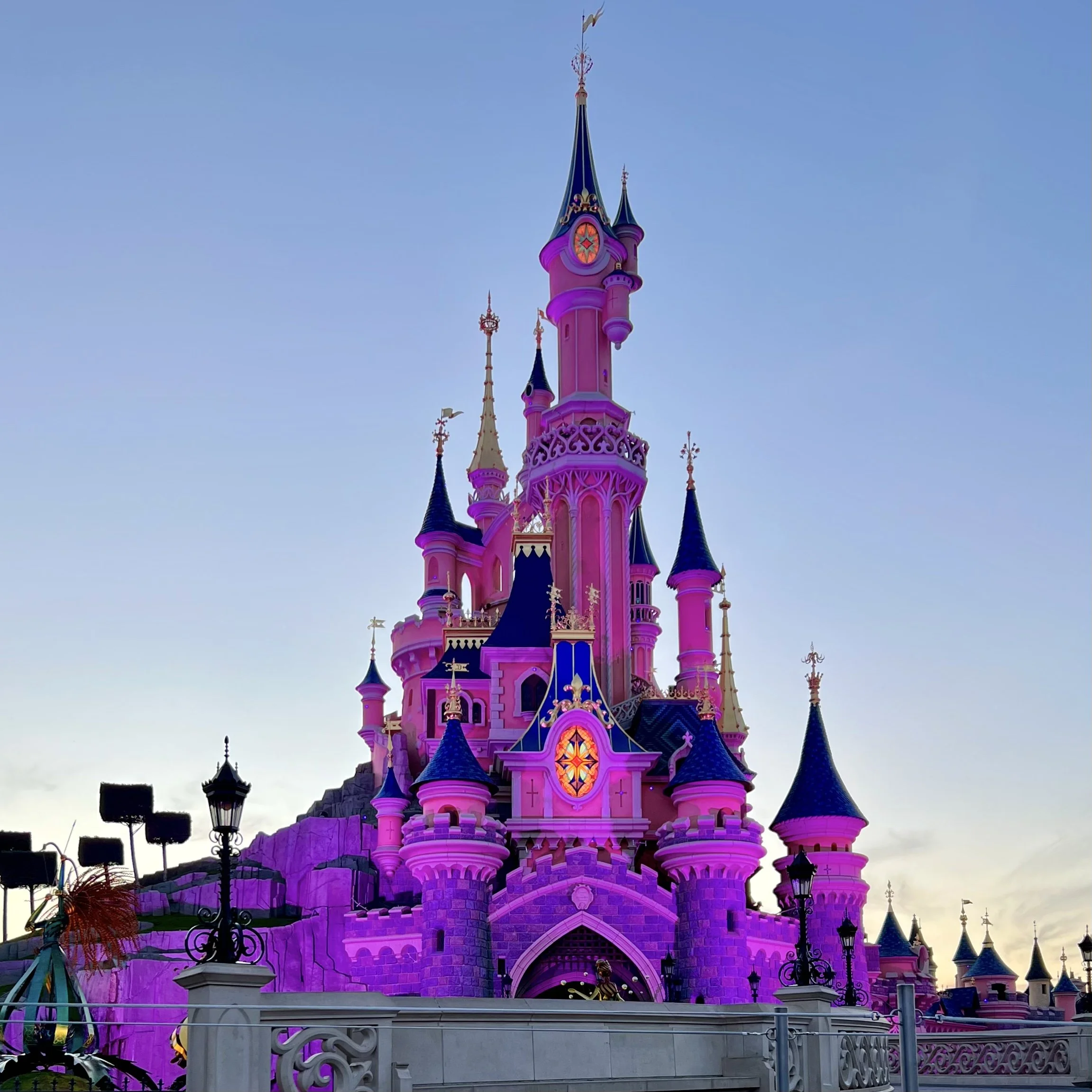 Sleeping Beauty Castle in Disneyland Paris prior to a nighttime spectacular.